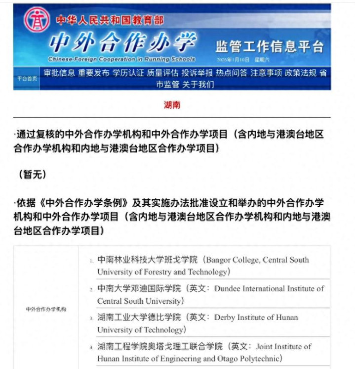 其中,湖南新增两所中外合作办学机构,2026年开始招生。
